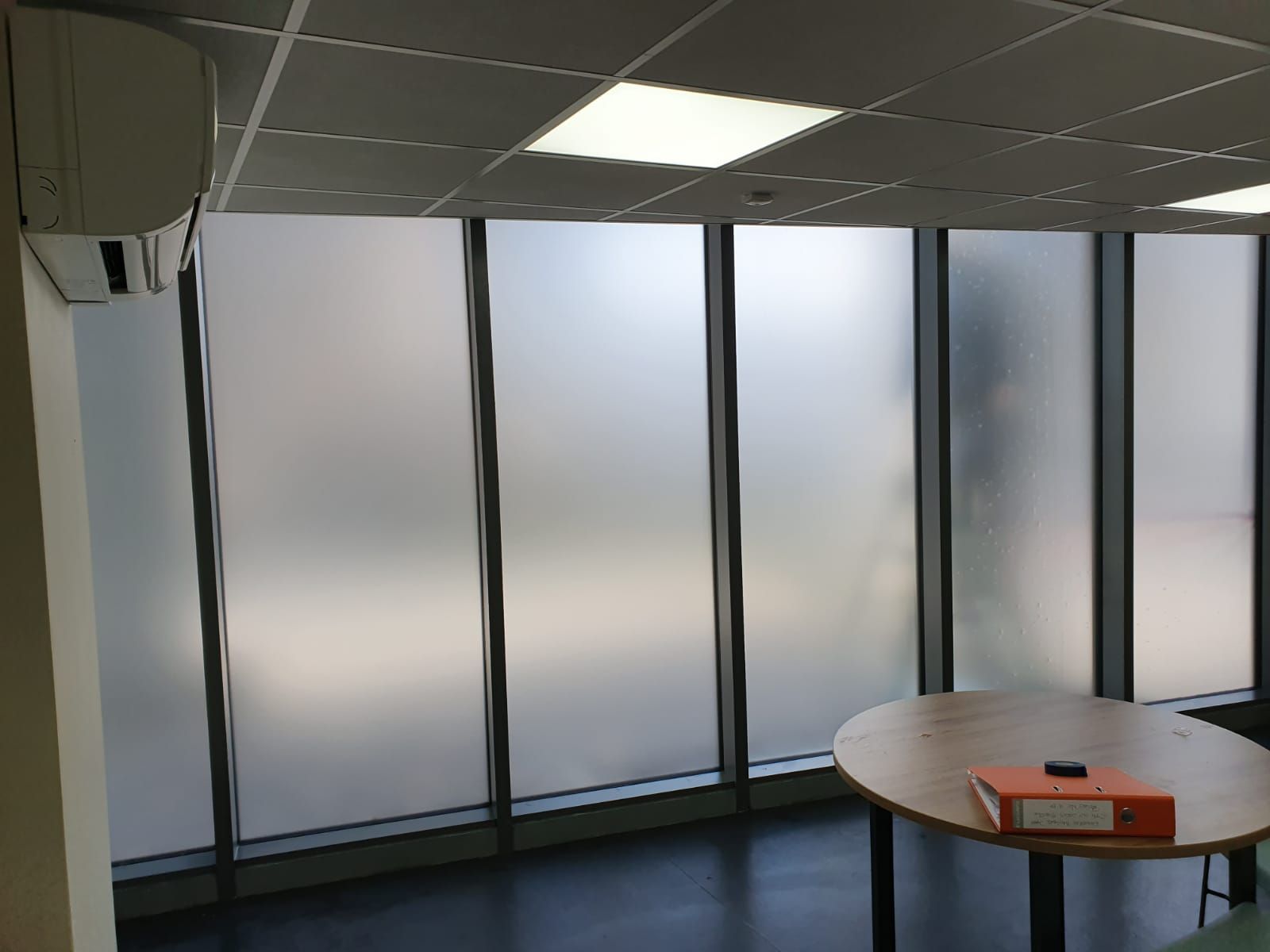 Frosted vinyl film can also be over printed with colour to match your corporate colours, also there are coloured films that are translucent and can give unique effects when light passes through them. There are many different types of films and vinyls that can be fitted for a different look.