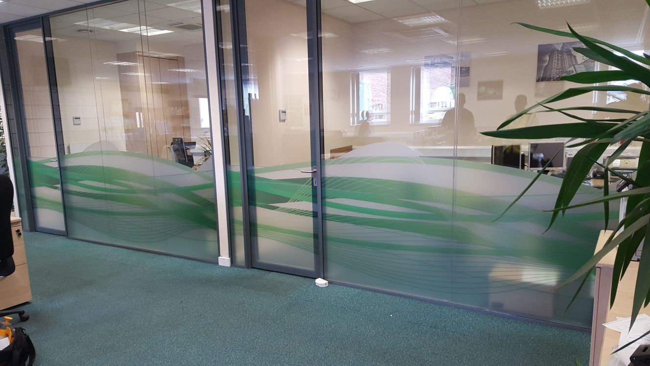 Etched Glass, Frosted Film and Window Manifestation is legally required to comply with regulations but is also an affordable way to reinforce your brand, create privacy, control light within your office/workspace/home as well as having a decorative and branded appeal.